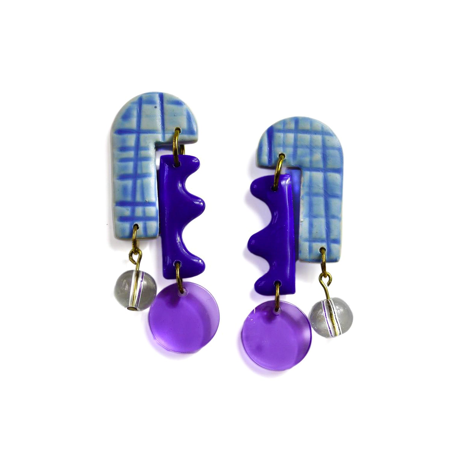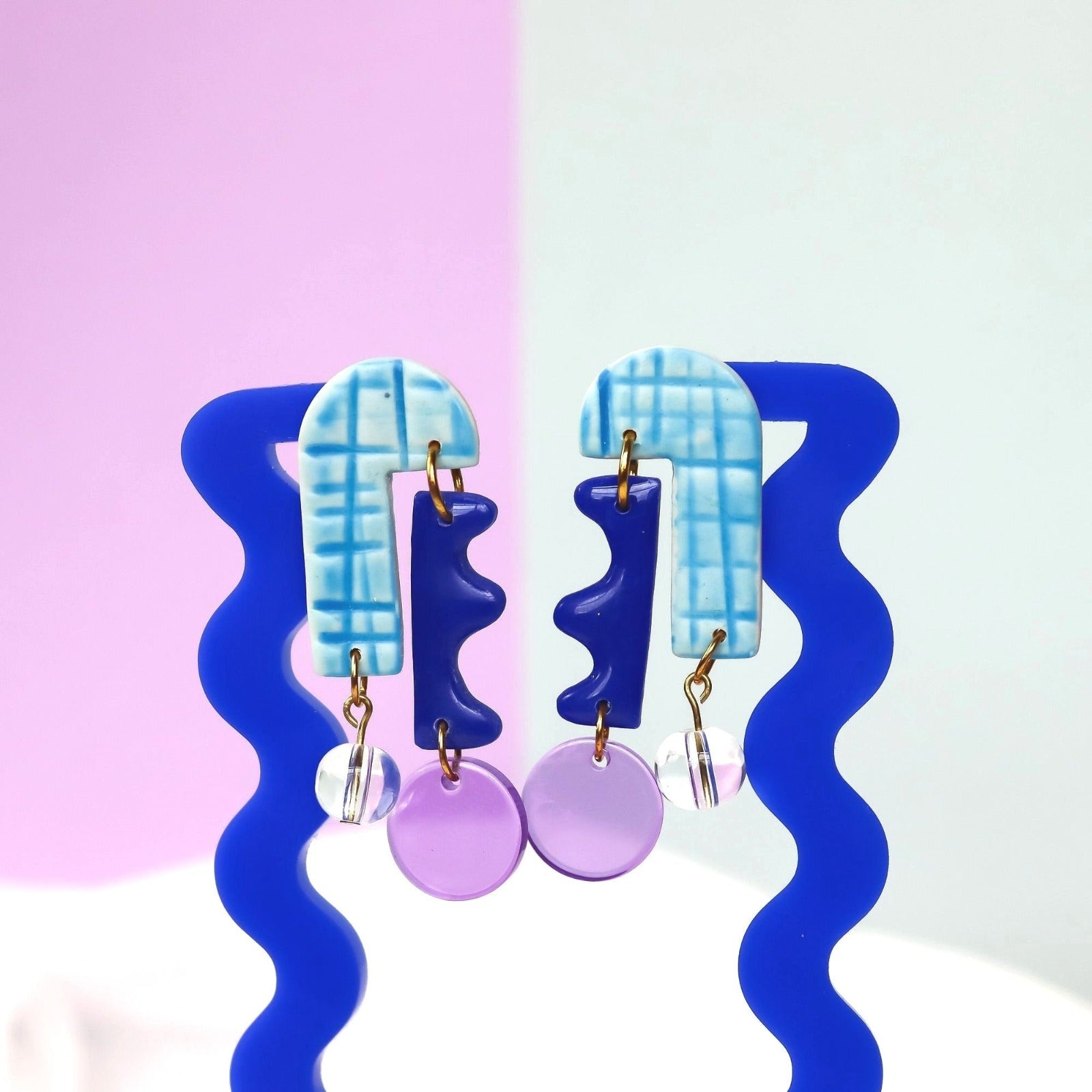 Bright and playful earrings made from polymer clay, brass, resin and acrylic. These colourful earrings are perfect for adding a statement pop of colour to any outfit. Every pair of earrings is handmade so every piece is completely unique!